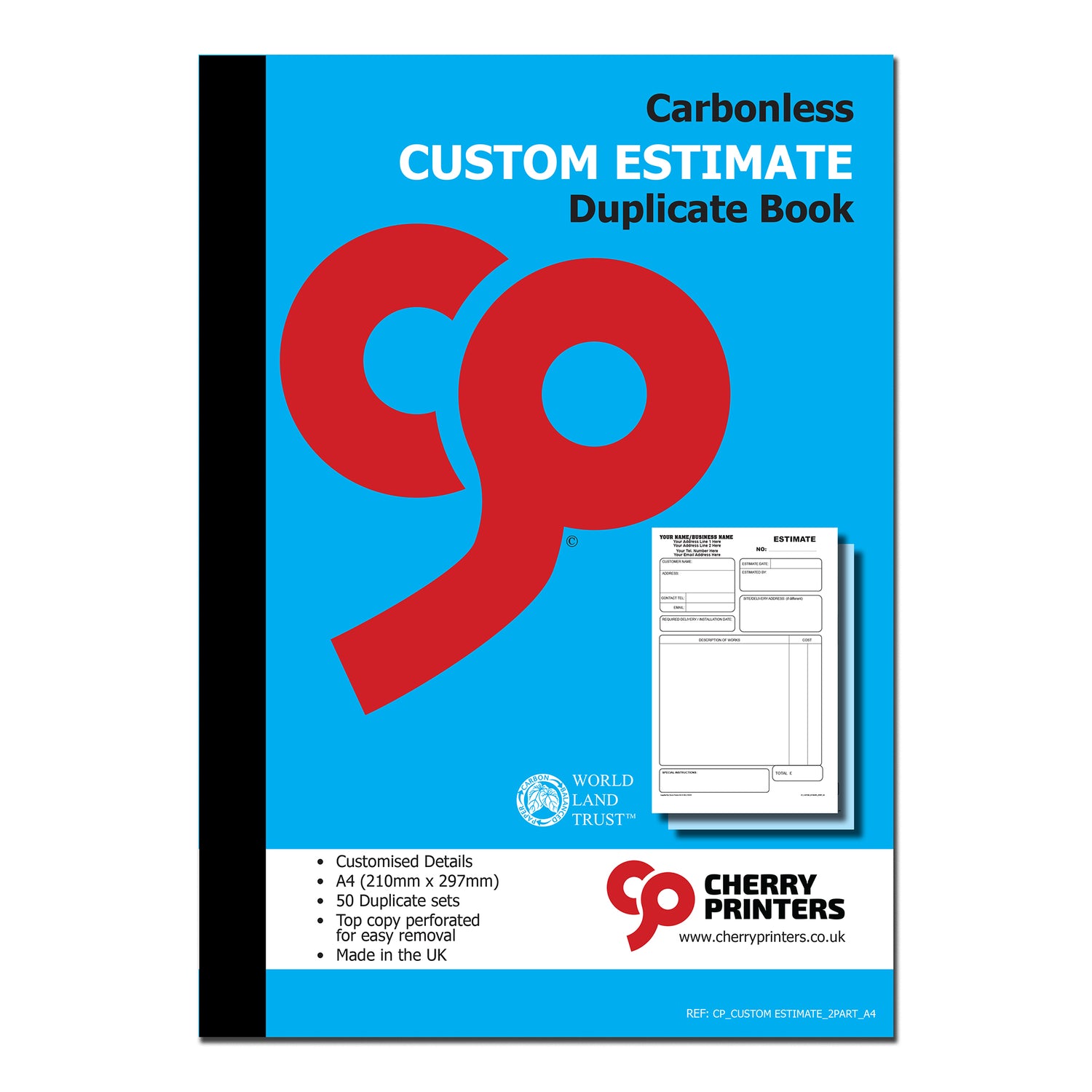 Cherry Printers No Carbon Required (NCR) Customised Estimate Book is ideal for any business needing to give a customer an Estimate/Quote prior to work.