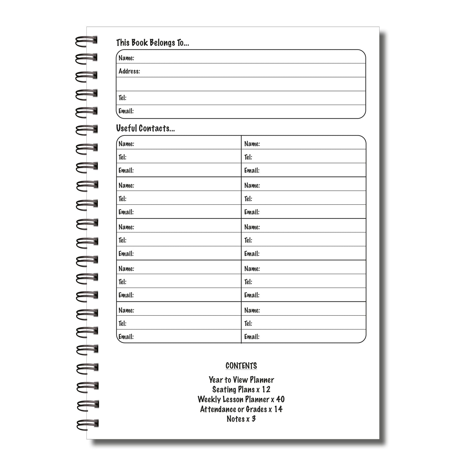 Our handy Teachers Planner is a perfect solution to help keep track of your contacts, seating plans, weekly lessons, attendance and grades in one convenient place .
