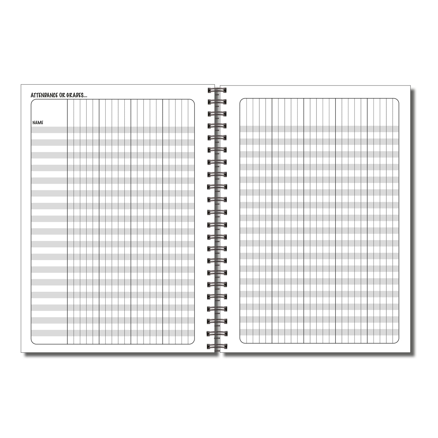 • Attendance or Grades pages for upto 34 students 45 entries per double page x14 double pages.