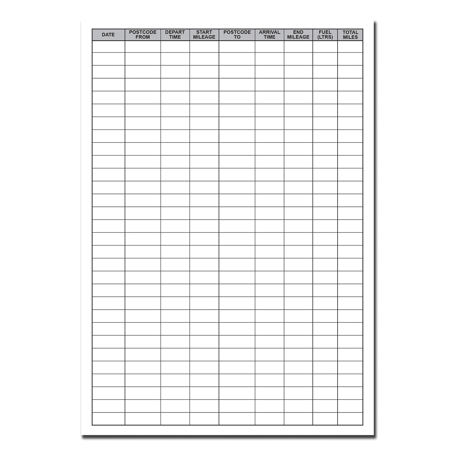 - Record date, postcode from & to, start & end mileage, depart & arrival time, fuel used and total miles.