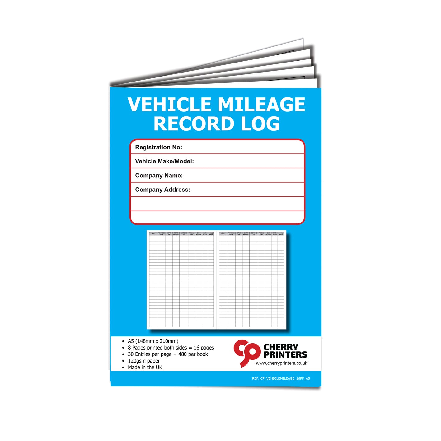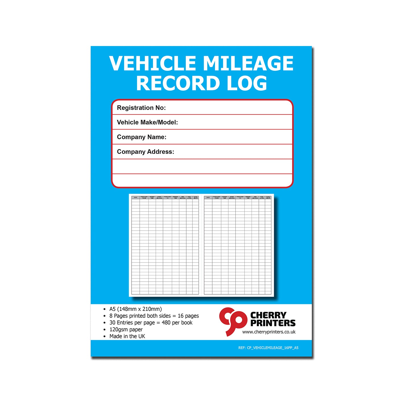 Cherry Printers Vehicle Mileage Record Log Book is ideal for any person wanting or requiring to keep a record of journeys made. With space to record date, postcode from & to, start & end mileage, depart & arrival time, fuel used and total miles. The book comes in a handy size of A5 which is 148mm x 210mm and is manageable without being too small. With 8 pages printed on both sides giving 16 pages total plus cover and 30 entries per page totalling 480 per book.