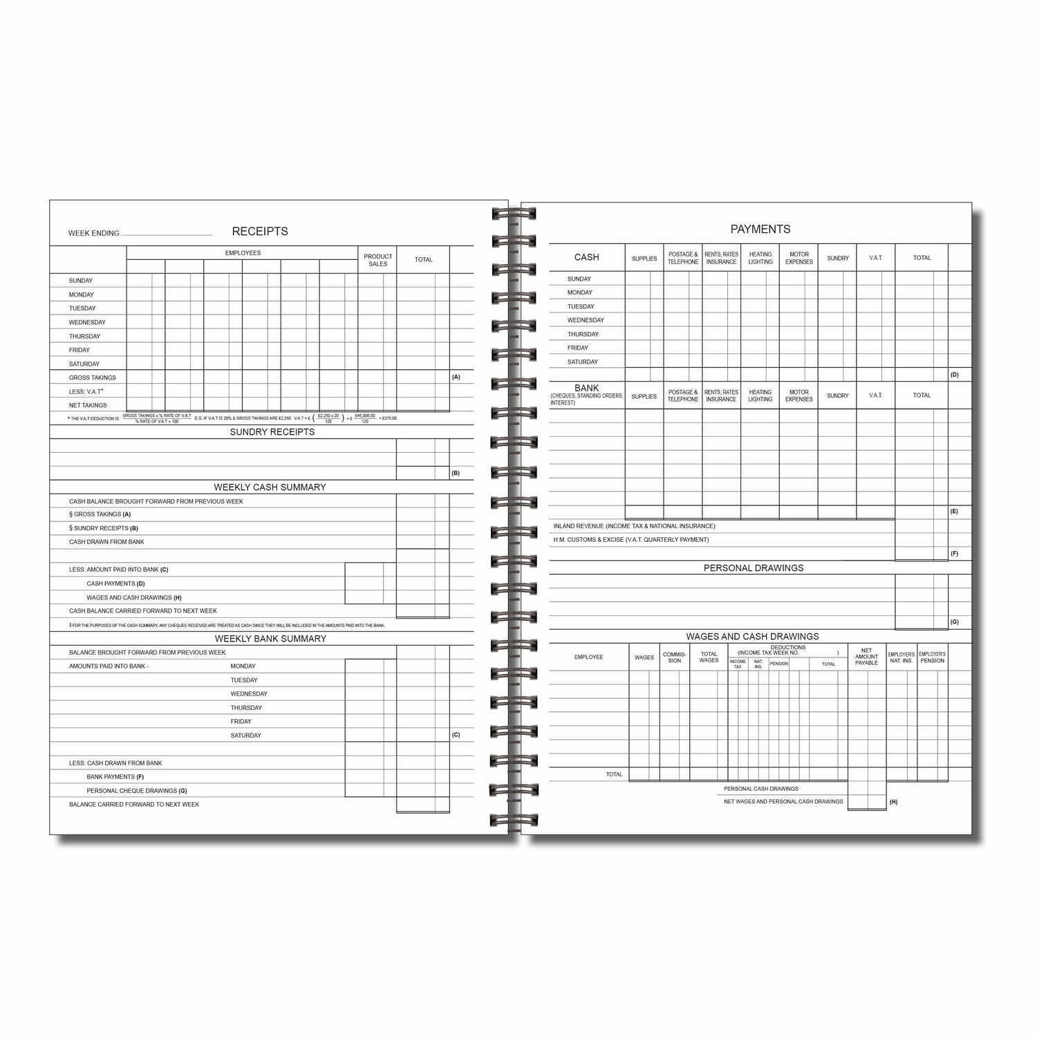Wiro-bound on the left-hand side and printed on smooth 120gsm paper, this durable A4 bookkeeping journal is made in the UK and ready to support you for a full accounting year.